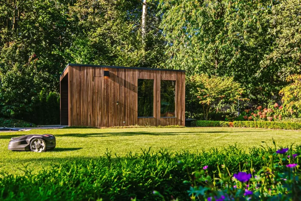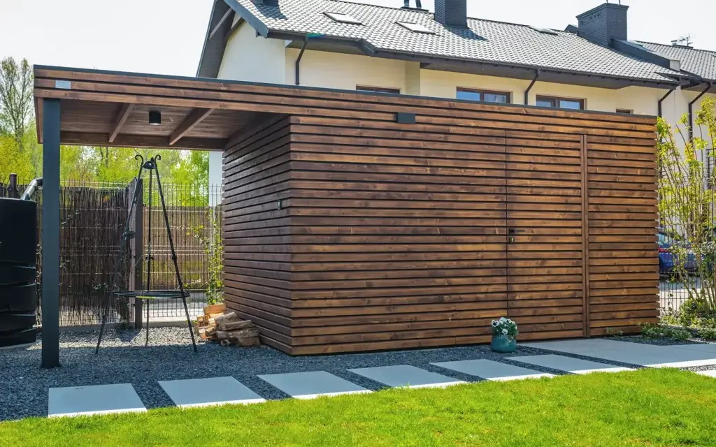 Zobacz, że schowek na narzędzia może wyglądać nowocześnie i elegancko i ładnie komponować się z architekturą ogrodu.